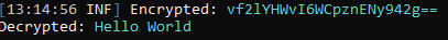 c.GetLogger<Program>().LogInformation($"Encrypted: {{Encrypted}}{Environment.NewLine}Decrypted: {{Decrypted}}", encrypted, decrypted);